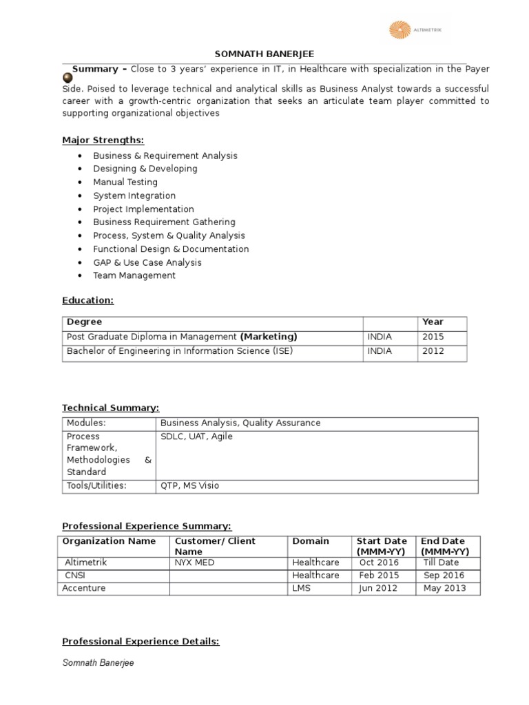 Sap Business Analyst Resume Example Straumann Usa Llc